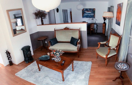 For your convenience, there's a refrigerator and a microwave. Bathroom amenities include a hair dryer, towels, and toilet paper. And there is a laundromat nearby so you can pack a bit lighter. Other amenities include a living room, bed sheets, and a dining table.