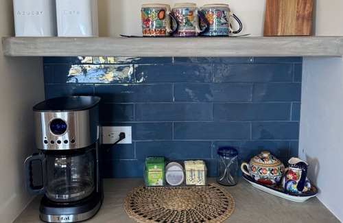 Casita Nopal is a charming, private retreat offering a blend of modern comforts and local charm. As you step inside, you're greeted by a cozy, inviting atmosphere that feels like a home away from home. The property features two well-appointed bedrooms: the master bedroom boasts a posturepedic king-size bed draped in premium linens for unparalleled comfort, while the second bedroom offers two single beds, similarly outfitted, perfect for friends and family.