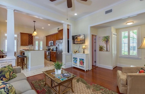 This renovated Old Town estate is designed for the real downtown experience in the Conch Republic, but in a large home-base all your own. SWEET HOME ANGELITA is located right in Old Town, half a block away from Duval Street and smack dab in the center of the entertainment district. You couldn't be any closer to the late-night scene and attractions of downtown. Fair warning... It can get a little noisy out there! SWEET HOME ANGELITA was renovated into two apartments which are offered together in this dual-home compound. You'll have two living rooms, two full kitchens, two sets of washer/dryers, and plenty of space for your group both in shared areas and private accommodations. You won't need a car, but should you decide to bring one you will have one spot in the driveway.