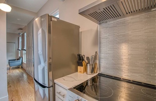 Guest favorite! Spotless and perfectly located studio apartment. This deluxe experience offers every convenience - a new premium mattress, 50" flat screen TV, fully equipped kitchen with high-end appliances, sleek furnishings, and secure entry.