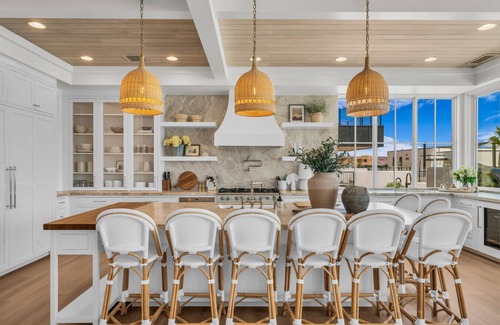 From the moment you arrive, you’ll be surrounded by thoughtful craftsmanship, designer furnishings, and custom woodwork. The fully stocked gourmet kitchen features high-end appliances and expansive dining and gathering spaces, perfect for both intimate dinners and lively celebrations. Floor-to-ceiling tile in every bathroom, HD TVs in every bedroom, and stunning lagoon views from sunrise to sunset complete the luxury experience.