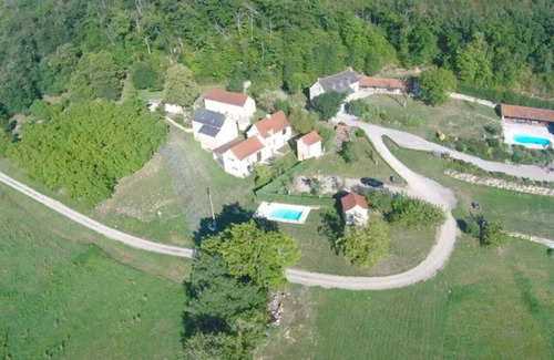 THE LARGE HOUSE: In an authentic, calm and sunny region, beautiful set of 2 houses, a rustic and a recent one on a plot of 1ha, breathtaking views of the valley, large heated infinity pool, solar shower, 2 yards, grounds for volleyball and pétanque, table tennis, barbecue, piano, billiards, wifi, 4 bathrooms, 5 wc, summer kitchen and winter kitchen, comfortable 2/18 people.