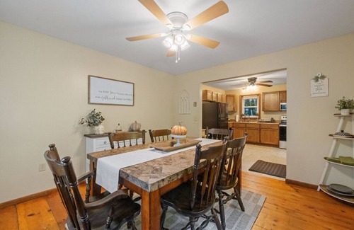 Escape to The Birchwood Chalet, a serene escape nestled among tall pines. This inviting, dog friendly, two-story home blends rustic charm with modern comfort — perfect for couples, families, or remote workers seeking tranquility. Relax in the bright living room filled with natural light, enjoy home-cooked meals in the fully equipped kitchen, or sip coffee on the private forest-view deck.
