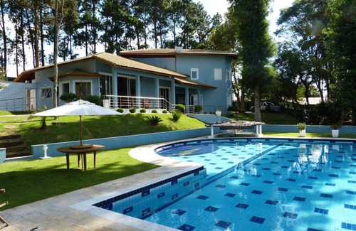 Situated just 500 meters from Zu Lai Temple, The Blue Mansion is a farm in Granja Viana, municipality of Cotia that offers accommodation with access to an outdoor swimming pool, lounge, kitchen, garden and parking, exclusively for guests. The villa has five living spaces, including a dining area, lounge, fireplace, TV room and mezzanine, as well as a fully equipped kitchen with dishwasher, microwave, refrigerator, gas and electric oven and food pantry . The Villa has 4 double bedrooms, 2 suites and 5 bathrooms (3 bedroom bathrooms, 1 bathroom in the barbecue and 1 social bathroom). Also, a flat screen TV is available. The outdoor area has a large swimming pool with swim lanes, children's area and poolside bar. In addition to a barbecue with pizza oven and barbecue. It is located within an exclusive area with a total of 5 thousand square meters with many trees and wild animals, walking trails that can be enjoyed in the vicinity of the villa. The Villa is 25 minutes from Marginal Pinheiros and the nearest airport is São Paulo/Congonhas Airport, 24 km away.