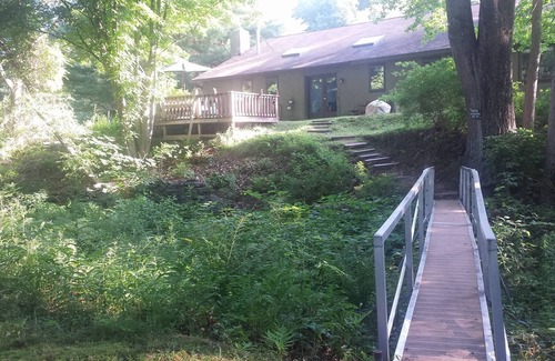 This 2-bedroom riverfront apartment can comfortably accommodate a family of 4. It is set on over 2 private acres (and attached to several additional acres of public parkland), it is approximately 20 minutes from the Metro North Train, a 15-minute drive to Bethel Woods (Woodstock). It is just a 2-hour drive from NYC, as well. Additionally, we are attached to a small apple/pear orchard and ranger station (park) which we encourage guests to utilize as an additional amenity. lots of nearby hiking trails, winter skiing, canoe rentals, fishing, and swimming (on our property). This section of the Delaware River is especially good for fishing, swimming, and boating due to its deep waters and gentle current.