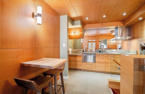 Experience Whistler at its finest in our luxurious 2-bed, 2-bath condo. This stunning two floor, 1000+ sq ft home, just steps from Whistler Village and Excalibur Gondolas, and Fitz Chairlift, features a gourmet kitchen with luxury appliances, vaulted ceilings, open-plan living and a spa-like master bathroom. With two large bedrooms and a pullout sofa it comfortably accommodates 6 guests. Enjoy natural light, high-end renovations, and easy access to dozens of restaurants, bars, and the mountain.