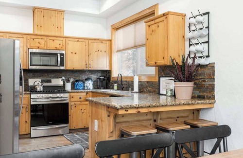 Guests have access to the whole cabin, deck space, and street parking. The garage is short, and could fit a small car or a couple motorcycles, but not an SUV or truck. Additional parking is located just a short walk away. Free WiFi, fresh linens and towels, fully stocked kitchen, washer and dryer are available. Guests have access to the community which includes a dumpster for trash, walking trails, and plenty of space in the woods to explore, sled, hike, and rock climb. Guests may use their own streaming sites to watch TV, or use a provided Netflix account. Are you traveling for a church, company, or group retreat? There are other cabins within walking distance to this one available to rent in conjunction. Let us know if you're interested and we'll help you coordinate your group's stay.