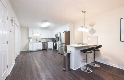 Our modern 2-bedroom condo in a beautiful suburban neighborhood offers a luxurious and comfortable experience. Enjoy the warm ambiance created by our new hardwood floors. Take a stroll to discover the historic downtown area, full of shops, restaurants, and outdoor spaces. Our location provides the perfect base for your short or long-term stay. Experience convenience and comfort at its best!