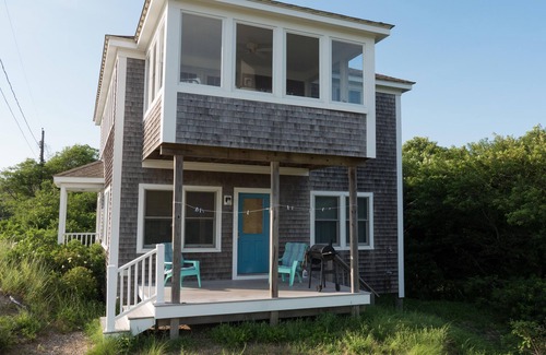 An amazing location for your beach vacation! This spacious and airy 1600 sq. ft open floor plan home is right on Corn Hill Beach overlooking Cape Cod Bay and gorgeous beach dunes. Imagine unwinding after a beautiful day at Corn Hill Beach, sipping a cocktail and watching a stunning sunset from your elevated screened in porch. Enjoy panoramic views of Cape Cod Bay and Pamet Harbor. This beach house has two bedrooms and two bathrooms. Sleeping arrangements include a king size bed, a queen size bed, bunk beds for the kids and a king size day bed. The gourmet kitchen is carefully appointed with everything you need including brand new appliances. The bright and sunny great room is perfect for family game time and relaxing. Amenities include central A/C, washer/dryer, large flat screen TV, WiFi, gas fireplace, outdoor shower and a BBQ grill.