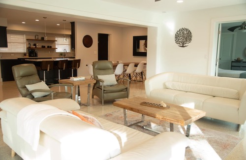Mid-century modern, 3 bedroom 2 bath pool home within minutes of Siesta Key Beach and Turtle Beach; (closest Siesta beach access is 2.4 miles away. Main Siesta Beach access is 4.2 miles away) easy access to downtown. This house was completely renovated in 2017, and the pool and patio area was resurfaced in 2020. Open concept, split floor plan, WiFi, screen enclosed pool and patio area, propane grill, large driveway for off-street parking, fenced corner lot in quiet neighborhood. Walking distance to delicious frozen custard! Great for families.