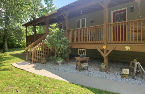Welcome to The River Gem! Amazing Riverfront cabin loaded with everything needed for a Fantastic stay. This place is a Fisher mans dream and a travelers Delight. Sit by the river and watch all your troubles float away. Spacious and very comfy. Large loaded kitchen and dining area. Gorgeous new flooring throughout. 3 Comfy King size beds with 2 full baths. Large yard and green country all around you. Huge porch with rockers. Fishing deck and a covered outdoor dining area. You will never want to leave. Centrally located and easy access. Great for Family get togethers and even a couple will find this place a River dream. Down the road to 5 Major Gem mines and close by to most Smoky Mountain attractions.