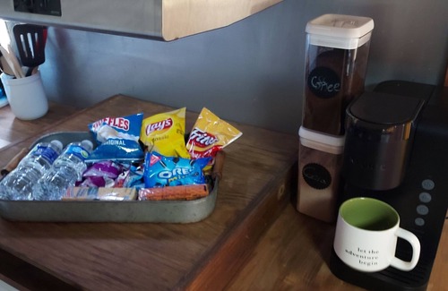 Water and snacks provided at no charge. We are pet and kid friendly. There is another camper onsite, with it's own area, that sleeps five comfortably, please check for availability.