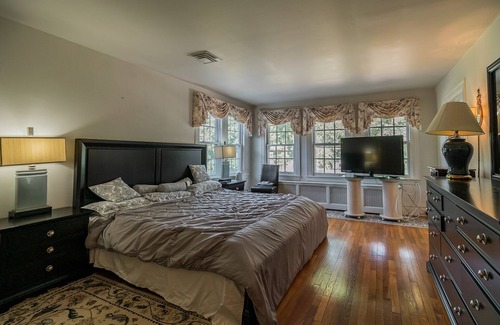 Built in 1775, this 10,000 square foot mansion with 10 beautiful acres of land provides for a luxurious vacation. Amenities include a private lake, swimming pool, tennis court, jogging and biking trail, children's playground, nature trail, beach, pickle ball court, basketball court, and more. The inside of the house includes a full bar, two large children's play rooms, a greenhouse, an office, a library, theater, parlor, and formal and informal dining areas. This old home is maintained by a cleaning company, property management and landscaping service to preserve its history. Guests should not expect a brand new facility or a 5 star hotel. Guests should look elsewhere for that type of stay such as a large hotel chain. Guests appreciate this home for charm, space, history and amenities.