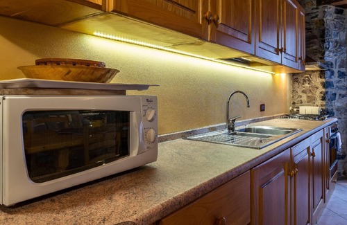 Thanks to the ceiling beams and solid wood furniture, there is a welcoming medieval atmosphere. The ground floor has a bedroom with two single beds (90 x 190 cm), a wardrobe, a bathroom with shower and washing machine. A spiral staircase leads to the first floor where there is a large living room-kitchen with stone walls and a wooden beam ceiling furnished with a large dining table and chairs, a sofa bed for two people and a satellite smart TV. The kitchen is equipped with microwave, gas stove, oven, fridge with freezer and dishwasher. The spiral staircase continues up to the second floor where there is a second bedroom furnished with a double bed (160 x 190 cm) and large wardrobe, here there is a second bathroom with shower cubicle. The apartment is equipped with an independent heating system.
