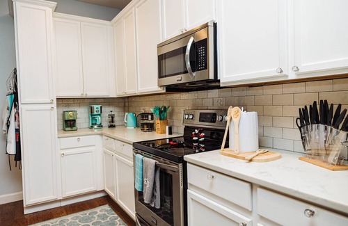 The open kitchen and dining area create the perfect space for socializing with others in your group. With counter seating for four and table seating for 10, there's plenty of room to gather, share a meal, or enjoy a family game night!