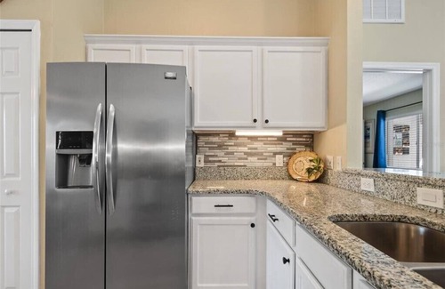 This lovely relaxing 4Bed 2Bath Pool Home with no rear neighbors is located 20 minutes from Disneyworld, 40 minutes from Universal and Seaworld. Free Wifi included. Free Parking on the driveway. This lovely relaxing 4Bedroom 2Bath pool home is situated on a quiet road in a friendly community. There are plenty of nearby supermarkets and restaurants to choose from along Lake Wilson Road, Highway 27 and Highway 192. There is a comfortable Master King bedroom with walk-in closet and large bathroom with walk-in shower and separate tub. There are two further Queen rooms with a shared hallway bathroom with walk-in shower. The Toy Story themed twin bedroom with two single beds will be a hit with all those Woody and Buzz fans young and old. All bedrooms have their own TV. In the Living Area, there is a large Smart TV and two comfortable sofas. The modern kitchen has all the amenities for making a quick snack or cooking a gourmet meal. There is a dining room table which seats 6 persons and a breakfast bar with 3 bar stools.