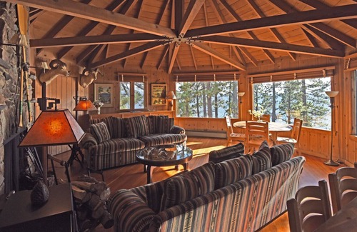 Perched on top of a pile of huge boulders, The Rockpile feels a bit like being in an upscale treehouse. Up a series of rock pathways interspersed with 49 stairs, the view of the lake, less than 50 yards away, is phenomenal and the house, built in 1935, exudes the charm, serenity and rustic elegance of Tahoe's bygone days. The views and setting are unsurpassed. The place has soul.