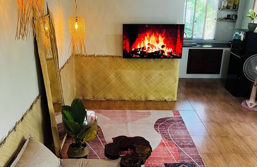 Unwind in the inviting living room on a plush relaxing sofa, a full-length mirror reflects the natural light that streams through the big windows, while numerous pillows offer additional seating options for your relaxation, we also provide a queen size air mattress for two extra quests . Immerse yourself in a world of entertainment with a cutting-edge 50-inch 4K TV, inviting you to indulge in your favorite shows and movies. Stay up to date with super-fast Wi-Fi, ensuring that you can effortlessly browse, work, or connect with loved ones.