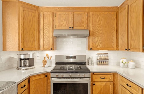 Our fully stocked kitchen is a chef's dream, complete with all the essentials and even a gas stove for cooking up delicious meals. Wake up to the smell of freshly brewed coffee and enjoy a light breakfast with provided oatmeal, nuts and brown sugar.