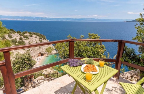 Intimate villa positioned on a rock directly on the Brsec beach, spectacular location overlooking 180 ° sea and island Cres.