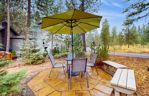 This charming and truly unique Sunriver home is the ideal getaway for two couples or a small family wanting to escape to sunny Central Oregon. This vacation rental has been recently updated with a new shower in the second bathroom and all-new furniture and features warm and cozy decor, an inviting living area with a wood-burning fireplace, air conditioning, and an open and updated kitchen with a new refrigerator and all the appliances and accessories you need to prepare quick snacks or full-course dinners.