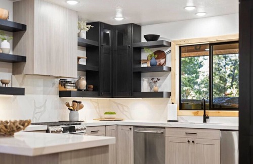 On the main level, discover a luxurious master suite with a king bed and a full bathroom. Unwind in the spacious living room, lounging on the comfortable couch, and savoring the picturesque views while the wood-burning fireplace casts a cozy glow. The kitchen is a culinary haven, fully equipped for both PB&J enthusiasts and professional chefs alike. It's a kitchen that never disappoints!