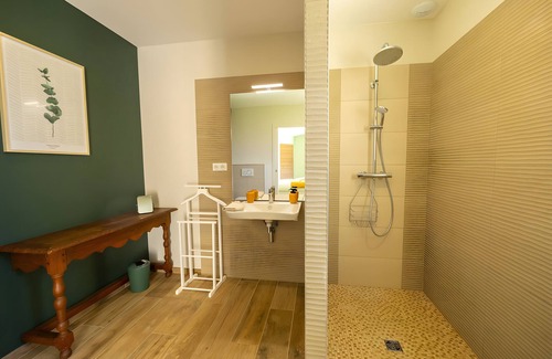 Designed in a zen and calming style, this double room offers a pleasant view of the garden, ideal for a relaxing stay in the heart of nature.