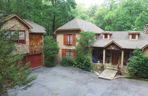 All the Comforts of Home! Private Setting in the Blue Ridge Mountains.1.6 acres. Whimsical backyard with Laurel bridges & 3 small waterfalls. Spacious Floor Plan with several suites for individual privacy and large Family rooms that can accommodate the entire group. Main house & separate Guest house. Sleeper Sofa in Guest House & lower level suite. Perfect for multiple couples or extended families. High End Furnishings. 3 fireplaces, 2 kitchens. Luxury linens, dishes, silverware, pots, pans, serving pieces & more. We can arrange a private chef who will cook for you or do an interactive cooking class with your group. Private wine tasting can also be arranged. We can have the fridge fully stocked for your arrival. Premier Host Janet Sanchez. Located only 5 minutes from Old Edwards Inn on Main!! House Generator....Absolute must in the mountains!!! Dream location w Executive Office for remote work. Starlink wifi internet service.