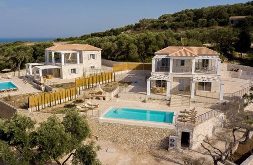 Vasiliki Villa is an exquisite 160m² stone-built sanctuary perched along Paxos' pristine coastline, where traditional Ionian architecture harmoniously meets contemporary luxury. This four-bedroom haven accommodates 8 guests, featuring a private 10x4m pool, multiple sea-view terraces, and sophisticated interiors, all just 400 meters from crystalline waters.