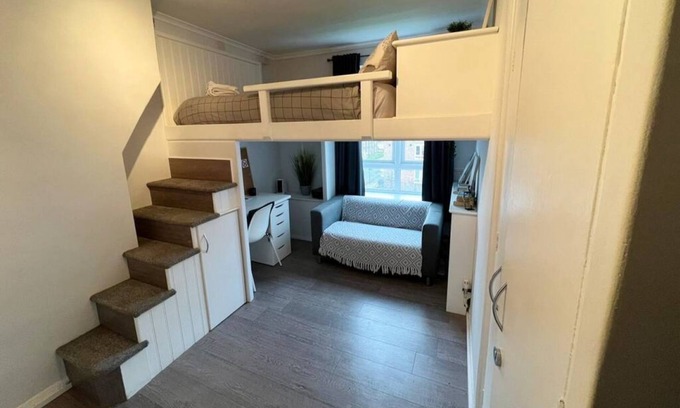Exquisite private room available in a spacious 3-bedroom flat, featuring a luxurious double loft bed with an exceptionally comfortable mattress.