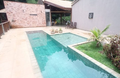 A peaceful and well-located place. Close to the city center, where there are restaurants and shops in general. Bedroom 1 with bathroom, with a double bed and a single bed, balcony with a beautiful view. Bedroom 2, with a double bed and a single bed, balcony with a beautiful view. Social bathroom. Large living room with full kitchen, wood stove and wonderful space with swimming pool. Conservation area, walk in the forest, stream, small lake and waterfall. Holistic space, suitable for practicing yoga, mantras and meditation. Close to trails through the forest, mountains, rivers and waterfalls.