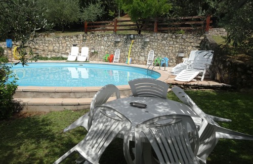It has a swimming pool in use with other guests of the structure and an enclosed garden.