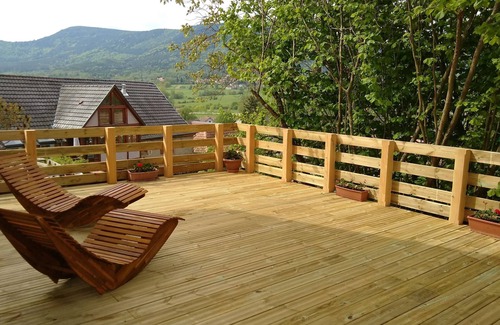 Alsatian house of character, half-timbered, entirely made by the carpenter companions of the Tour de France, in the purest Alsatian tradition, located at the foot of the whole hikes, 10 km from the Alsace wine route and 9 km from the Haut Koenigsbourg castle. It also offers a view of the hills under the Vosges and the gardens.