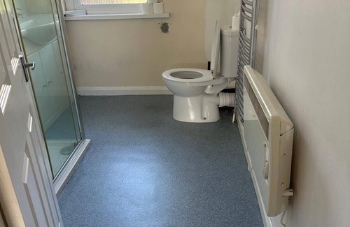 Shower room with soacious shower tray and easy cloth changing within shower room.