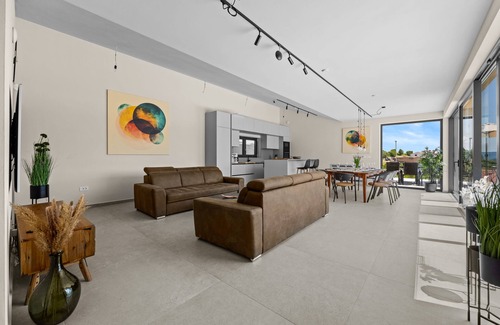 This newly built villa, complete with a swimming pool and spacious terrace, is nestled in a picturesque village in central Istria, offering guests a truly unforgettable stay. Surrounded by breathtaking views of the serene landscape, the villa provides a peaceful retreat for ultimate relaxation. There are four elegantly designed bedrooms, comfortably accommodating up to eight guests. The main living area features an open-concept design with a fully equipped kitchen, a stylish dining space and a cosy living room ideal for unwinding. Large windows throughout the villa fill the interior with natural light, creating a seamless connection to the outdoor spaces. The bedrooms, each with an ensuite bathroom, are thoughtfully furnished with two double beds and four single beds. For added convenience, an additional restroom is available. The villa is air-conditioned with five A/C units and offers two private parking spaces for a stress-free stay. Pets are warmly welcomed at no extra charge.