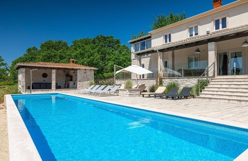 Welcome to the beautiful Villa Belle with Pool in Istria! A modern 4-star villa extends on 2 floors, boasts 7bedrooms, 4 bathrooms, and 1 toilet. It can accommodate up to 14persons. Villa is located in a small village of Jadruhi near Vizinada near Porec town that is just 30 minutes away by car.