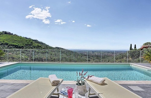 Villa Biancavite is an elegant two-story villa situated in a quiet location, a few minutes from the town center. It sleeps 12 people. From Villa Biancavite you will enjoy a charming view of the valley, of Montecatini Alto and of Montecatini Terme. Villa Biancavite is 380 square meters (4100 square feet). It features a private swimming pool, a small private terrace, a private patio, a private garden, air conditioning (please read description below to check in which rooms the units are installed), winter heating and WI-FI Internet access.
