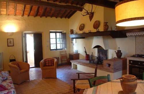 This impressive country house is located in Rivalto, a small medieval village between Chianni (3 km) and Casciana Terme (thermal baths, 5 km away), in the rolling hills near Pisa. It is a place full of atmosphere and tranquillity. The house is only 300 metres from the village, in a breathtaking position with a view over the valley and the hills of Volterra. In Rivalto there is a restaurant and a small grocery shop, while in Chianni there are a few restaurants serving typical Tuscan dishes and a few shops. An excursion around the village and up to Chianni, among vineyards and olive groves typical of the Tuscan countryside, is an experience you will never forget. Volterra is 35 km away, San Gimignano 45 km, Pisa 38 km, Siena and Florence 70 km.