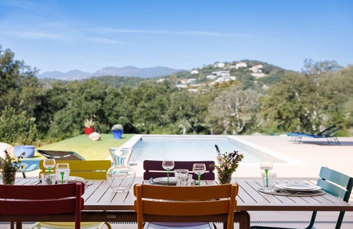 Cette villa est une véritable invitation au lâcher-prise, grâce à sa piscine privative entourée d'une spacieuse terrasse équipée de salon de jardin extérieur donnant sur le maquis Corse.
