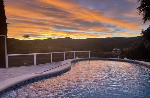Villa EmmaYour holiday home in a quiet locationThe cosy and fully equipped villa is situated on an enclosed, very private plot and has 95 m². It has a great view over the nature reserve and the Montgo. The flat plot has both a carport and ample parking in front of the property. Due to its location on the outskirts of the village, the villa is wonderfully quiet and offers everything for a successful holiday. The villa has two bedrooms, each with a double bed, and two bathrooms - one of them en suite. The spacious living area directly adjoins the open kitchen on the one hand and the large pool terrace on the other. In the house itself you will find air conditioning in the master bedroom and in the living room. The pool with its 5mx10m invites you to swim and relax. The covered terrace also offers a nice shady spot with a view over the pool. Next to the spacious pool terrace there is also an outdoor shower. Here you can relax, cool off in the water or simply enjoy the peace and nature. Of course, it is not far to the beach and also to Denia.This house has an alarm system with combined camera surveillance. The alarm system is switched off during the rental period and is not available. The rental price includes an electricity consumption according to rental contract. An additional consumption will be billed separately. A security deposit will be charged prior to arrival and will be refunded within 14 days of departure if no damages have been made. There is a cleaning fee, which is not included in the rental price. The laundry costs for bed linen/towels are listed separately when booking. From the 1 July until 31 August the arrivals and departures can only be realized on a Saturday. We kindly ask for your understanding that we can only accept bookings made at least 7 days before arrival and where the minimum age is over 26 years. All information, representations and calculations on these pages have been compiled with care and checked for accuracy on the date of publication. The information corresponds to the current state of knowledge and is based exclusively on information provided to us by our clients. We assume no responsibility for the completeness, accuracy, and timeliness of this information.