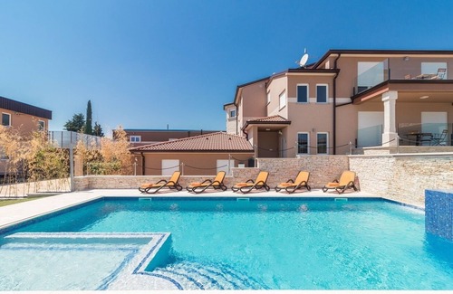 This modern and large property is located just a few kilometers from Pula and can accommodate up to 18 guests. This villa consists of 3 separate accommodation units equipped with a kitchen, a kitchenette and a bar with a fridge. The interior with 7 bedrooms and 5 bathrooms is ideal for families traveling together. There are many things that will be fun for the whole family - a children's playground, billiards, darts, table soccer, fitness equipment and to relax there is a Finnish sauna and an indoor whirlpool. This villa is a spacious and modernly furnished villa that offers you everything you could want for a perfect vacation. The outdoor area, in addition to the beautiful pool, has an outdoor kitchen equipped to satisfy even the most demanding gourmets. Be enchanted by this perfect home and book your ideal vacation in the Istria region today!