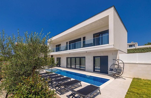 Villa JANA is a beautiful newly built Villa located in Linardići for 8-10 persons. Guests have at their disposal four luxury furnished bedrooms each with its own bathroom, a spacious living room and a modern kitchen with dining area. The garden area is equipped with a private salt water pool measuring 40m2, a terrace with an outdoor dining area and a private parking space. Villa JANA is perfect for a family vacation and we are sure you will enjoy your stay!