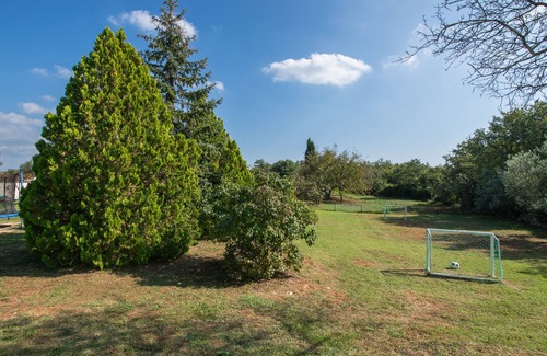 Beautiful villa Lara with private pool near PulaThe villa Lara is a modern, comfortable furnished villa with four bedrooms. The villa is located in Belavići, a quiet small village placed just a few minutes drive from wonderful beaches of the eastern Istrian coast. This villa is very well-equipped with spacious interiors and beautifully furniture. There is a large garden with private outdoor pool, a barbecue, children playground, volleyball and mini football for your complete enjoyment of the holiday. This vacation home is ideal for friends or family because it consists of two apartments. Each apartment has its own entrance kitchen with dishwasher, bathrooms and two bedrooms. The whole house is rented as one unit.Enjoy in nature and greenery with your family or friends. Book Villa Lara, take a swim in an outdoor pool or play football or volleyball during your stay at this gracious villa.