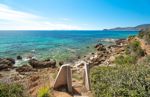 Villa Levant has its own private access to the beach by steps from gardens overlooking the sea towards the Islands. It confortably sleeps 8 people in 4 air-conditioned, ensuite bedrooms.
