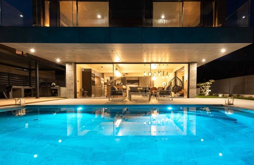 Luxury villa LORKIA in Baška on the island of Krk for 8 persons has four bedrooms and four bathrooms. A living room, kitchen with dining area, sauna, jacuzzi and a fitness corner are also at your disposal. Outside there is a large heated infinity pool equipped with a counter-current swimming function. The villa is located near the sea and one of the most beautiful beaches on the Adriatic located in the center of Baska. The villa is fully equipped and provides everything you need for an ideal, relaxing but also fun vacation. Welcome!