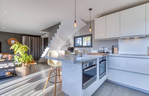 In a village located on the edge of the Camargue and close to the beaches, this modern 125 m² house is quietly situated in a cul-de-sac and offers 4 bedrooms, including one on the ground floor. A spacious living area with an open kitchen allows you, through large glass doors, to access an outdoor space ideal for relaxing, swimming, or enjoying a good meal together. From the house, you can walk to the village center and enjoy its traditional shops and the Sunday morning market. The tasteful decoration of the house creates a welcoming atmosphere, perfect for a successful holiday.
