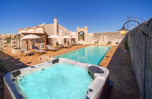 The house has an outdoor area with a heated swimming pool, a jacuzzi and a terrace overlooking the countryside and the sea of Menfi.