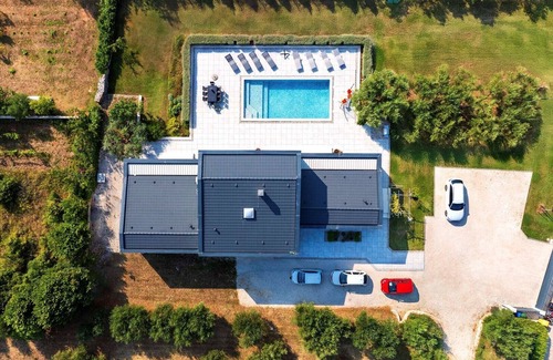 Choose Martincic Residence for your vacation in Istria and enjoy its superb features. This stunning four-bedroom modern house is located in a quiet countryside neighborhood. It’s very exclusive and balanced in its style. This attractive villa with pool in Istria comes without a single excessive detail – and the ones that are there give the house a refined sensation. The large windows only add up to the spaciousness of this already commodious house. The property rental for 8 is completely equipped with new appliances and contemporary furniture. Its exterior offers a private 50m2 large pool, and those who prefer swimming in the blue Adriatic can find the nearest beach less than a kilometer away.