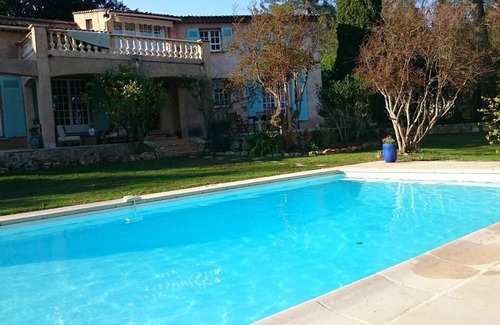 A house in the middle of a large garden consists of a multisport field (tennis, volleyball, badminton), a petanque and a pool with pool house and barbecue. It is ideal for 2 or 3 families thanks to many varied rooms and outdoor areas allowing everyone a rest and have fun. The shops are within walking distance: carrefour market has 300metres, and a bakery, a restaurant, a cafe. Behind the house leave trails ATV ideales for jogging or walks. The village of Valbonne is a 3-minute drive, and nearby Biot (10 minutes). The beaches of Antibes, Cannes and Theoule sur Mer are 15 kilometers away, but also the villages of Gourdon and Saint Paul de Vence. This house is ideally located between sea and mountains, in the heart of a secure area that will allow you to spend a great holiday with family and friends.