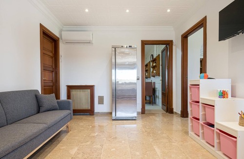 Fantastic Villa in Son Ferriol near to center of Palma city and beach.Ideal for families and groups of friends.Has 5 double bedrooms and 4 bathrooms, 2 living rooms and full equipped kitchen. TV, Wifi, Air Conditioning. Large garden with a private pool and court for sports to practice skating, basketball, indoor soccer etc..